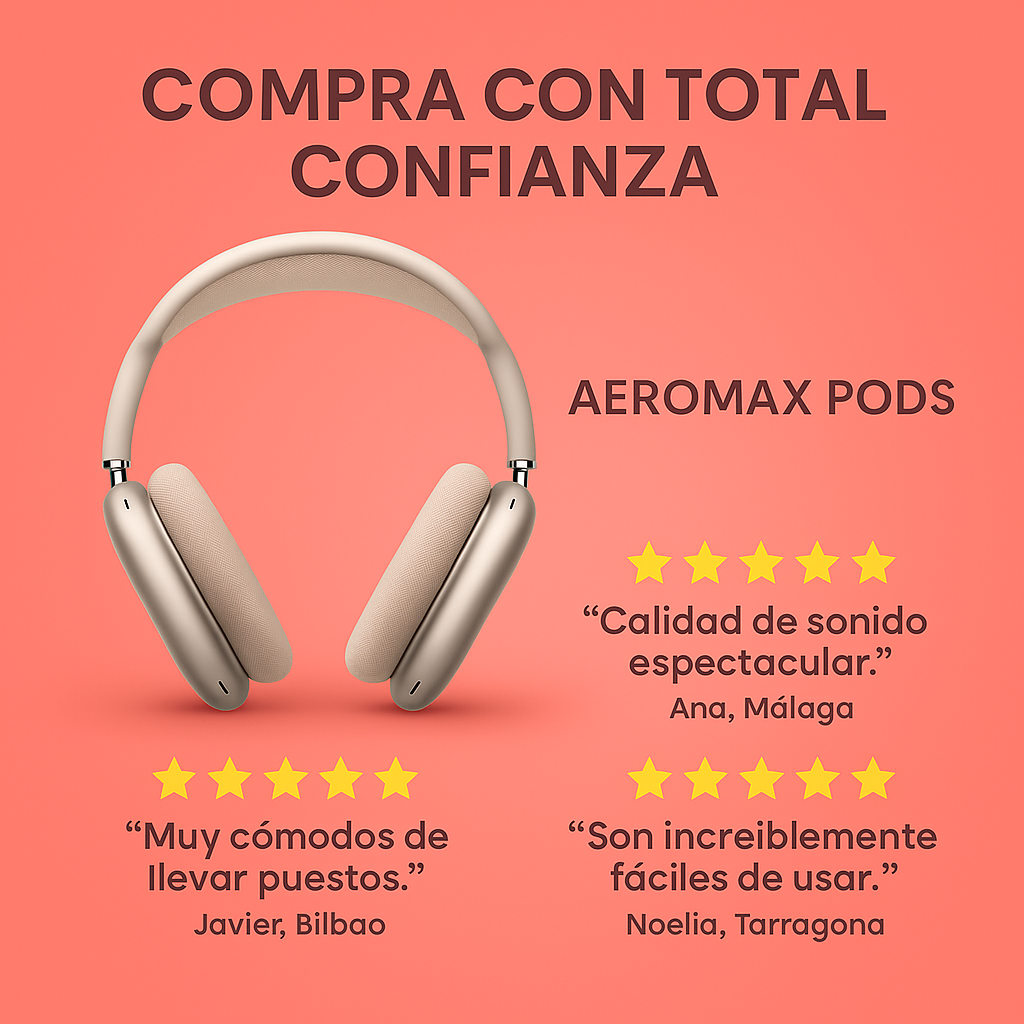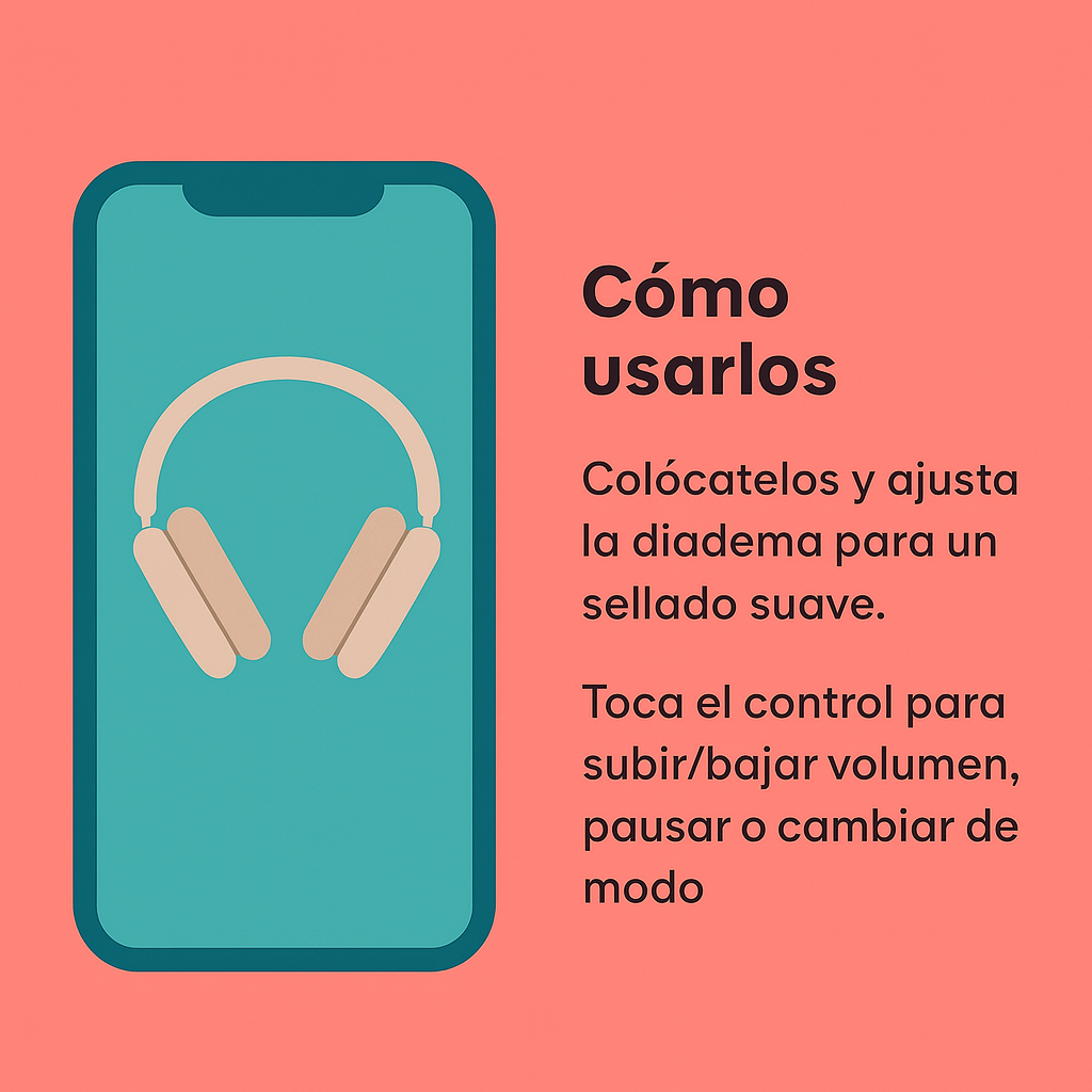AeroMax Pods, cable de carga y guía rápida. Llegan listos para usar: solo enciende, empareja y presiona play.